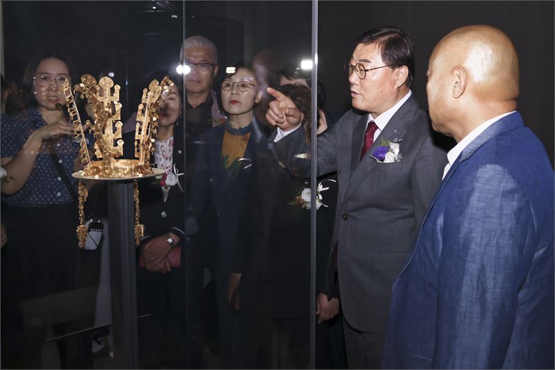 경남 합천군은 5일 합천박물관에서 '국보 순회전: 모두의 곁으로'를 개막했다. ‘금관과 금방울, 어린 영혼과 함께하다’를 부제로 오는 7월 21일까지 열린다. 국립중앙박물관이 주최하고, 합천군과 국립진주박물관이 공동주관한다.