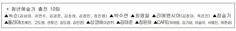 청년예술가 10팀이 발라드, 밴드, 어쿠스틱 등 다양한 장르의 경연 무대를 선보이고, JTBC 히든싱어 박미경 편 우승자 ‘이효진’의 축하공연도 즐길 수 있다.