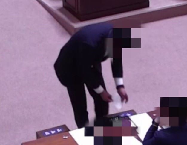 이들 사진은 '투표용지를 감표위원에게 노출한 사례' 11건과 '투표용지를 접은 사례' 11건이다. 투표용지를 감표위원에게 노출한 사진의 경우 시 의원들이 투표용지를 접지 않은 채 투표함에 용지를 넣는 모습이다.