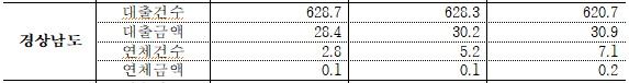 경남의 가계대출은 30조 9000억 원에 62만 1000건이었다.