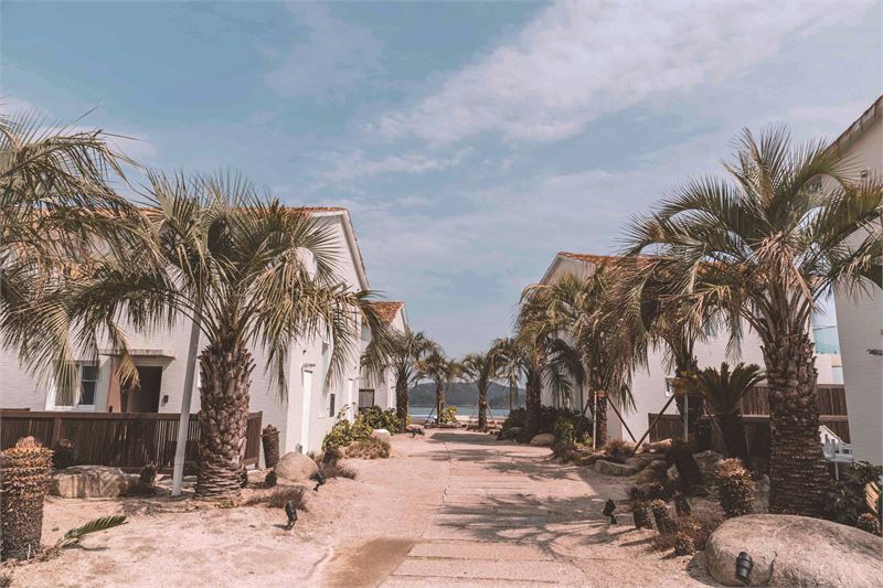 야자수가 여름 운치를 더하는 하동군 진교면 '아룬코스트풀빌라' 팬션. 남해 바다를 볼 수 있다.