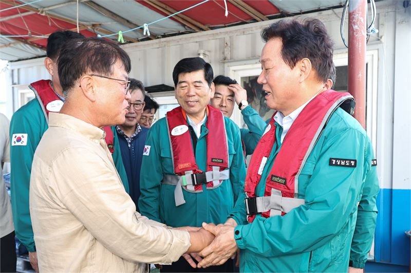 박완수 경남도지사는 31일 통영시 해상가두리 양식장과 적조방제장비 보관센터를 방문해 고수온·적조 대응 상황을 점검했다.