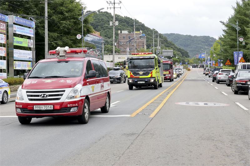 합천소방서~합천공설운동장 구간 긴급차량 실제운행 훈련 모습