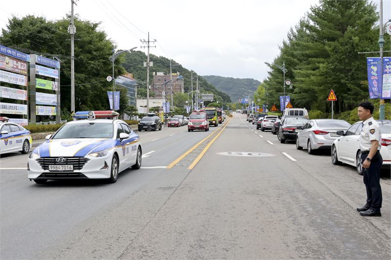합천경찰서가 주관한 차량이동통제 훈련은 홈할인마트에서 군청 제2청사까지 진행했고, 합천소방서에서 주관한 긴급차량 실제운행 훈련은 합천소방서~합천공설운동장 구간에서 군수가 직접 현장 지휘를 했다.