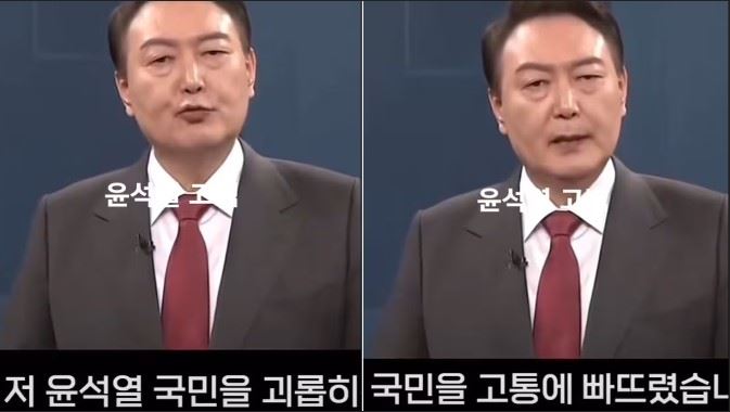 최근 틱톡 등 소셜미디어에서 확산하고 있는 윤석열 대통령 합성 딥페이크 영상. 틱톡