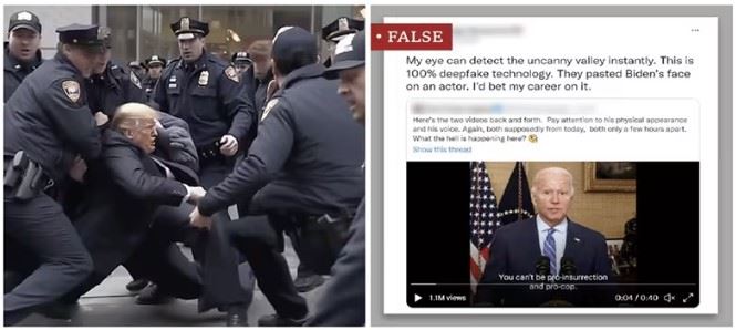 미국에서 번진 조 바이든(오른쪽) 대통령과 트럼프(왼쪽) 전 대통령 딥페이크 영상. NPR