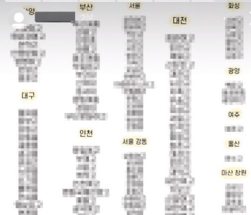 SNS에서 공유되고 있는 출처 불명의 ‘딥페이크 피해 소속 학교 명단’. 온라인 캡처
