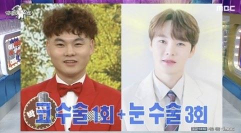 트로트 가수 박서진이 방송에서 성형 비용으로 약 1억 원을 썼다고 밝혔다. MBC 캡처