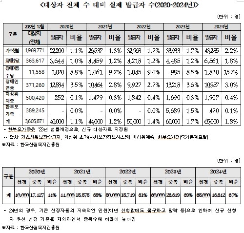 한부모가족의 경우 발급률이 0.1%에 그쳐 이 정책의 사각지대가 크게 존재했다.