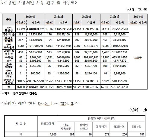 산림복지시설 '관리자 예약'도 장애인, 노약자 등 사회적 약자 배려가 부족한 것으로 드러났다.