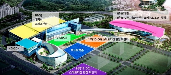 공식 앱 스마트티켓 현장 확인처도 오전(벡스코 야외주차장 부지)과 오후(벡스코 부대시설 부지)로 분리했다.