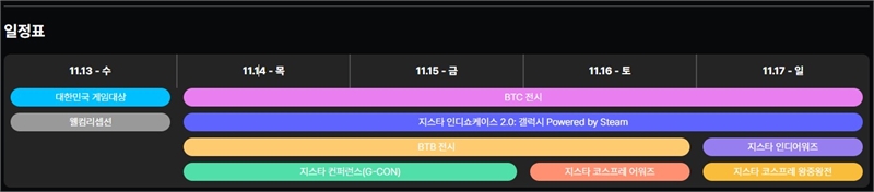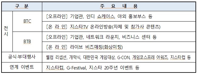 주요 행사는 개막 전날 13일 게임대상과 리셉션, 14일 개막식, 14~15일 컨퍼런스가 예정돼 있다.