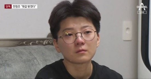 전청조 씨가 종편 채널A와의 인터뷰에서 눈물을 흘리고 있다. 채널A 뉴스