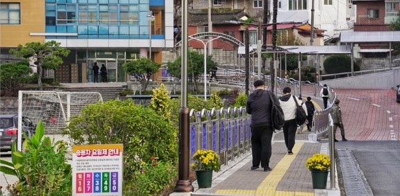 2025학년도 수능 수험생들이 지난 달 14일 아침, 수험장인 경남 진주고 교정 인도를 따라 긴장의 발길을 옮기고 있다. 정창현 기자