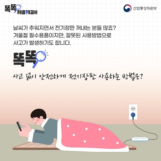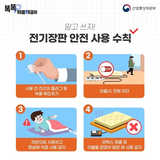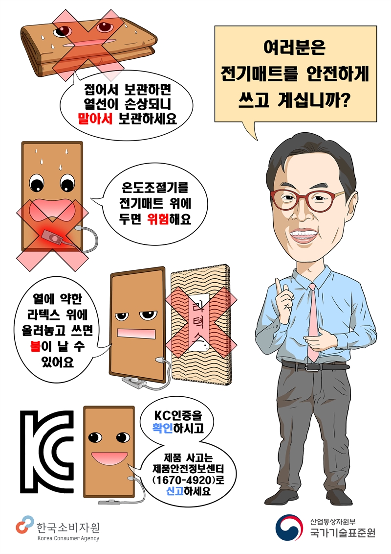 전기매트 화재사고 예방 홍보 포스터. 산업통상자원부