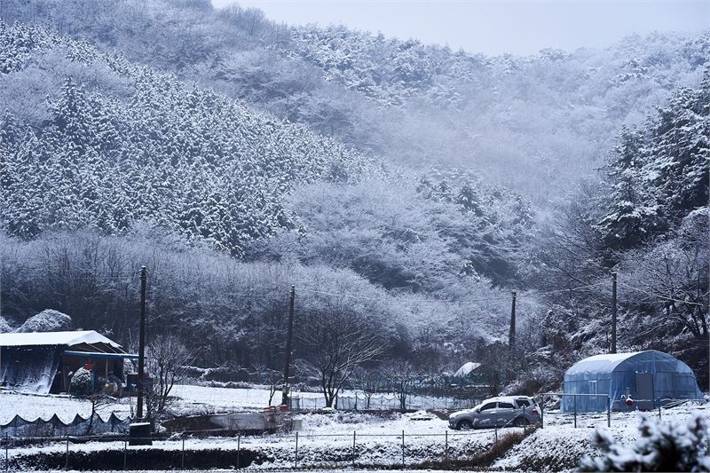 눈이 귀한 경남 진주 지역에 8일 새벽 올해 첫눈이 내렸다. 예기치 않는 눈으로 이날 오전 7시 기준으로 0.4㎝의 적설량을 기록, 시가지를 하얗게 만들었다.