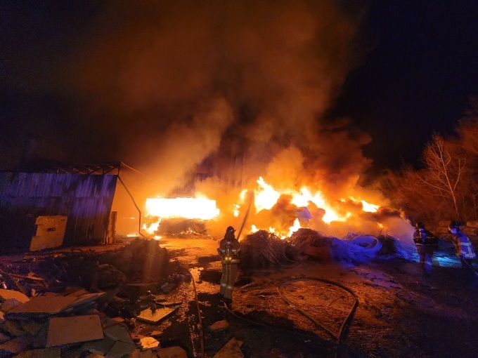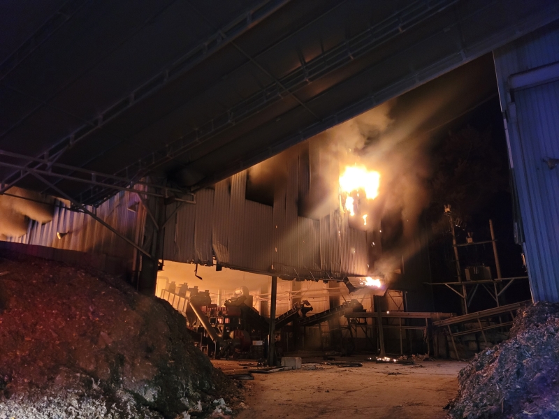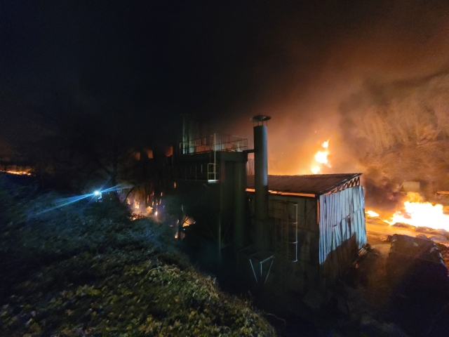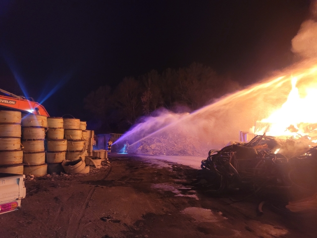 경남 함안군 군북면 사도리의 한 생활폐기물(쓰레기) 처리 공장에서 10일 오전 5시 32분쯤 화재가 발생, 진화 작업이 펼쳐지고 있다.