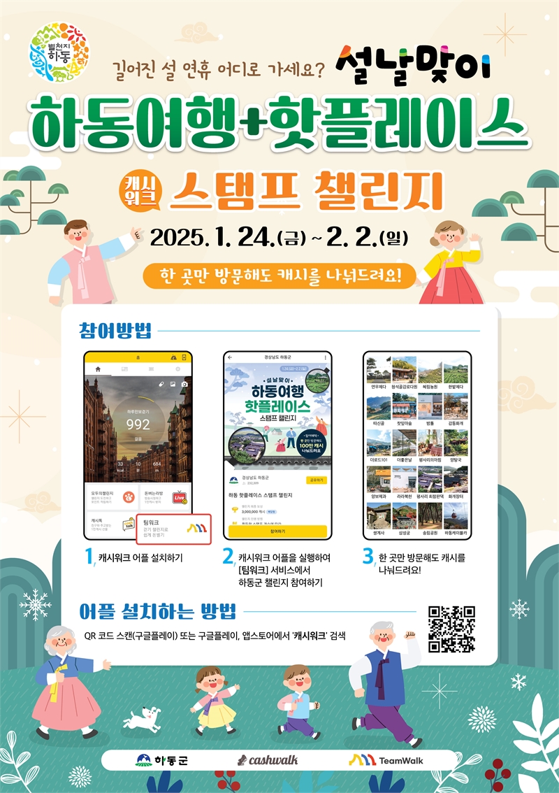 경남 하동군이 설 연휴에 관광객들의 발길을 사로잡기 위한 ‘모바일 스탬프 챌린지’ 이벤트를 진행한다. 이번 설엔 27일이 임시공휴일로 지정돼 연휴가 길다.