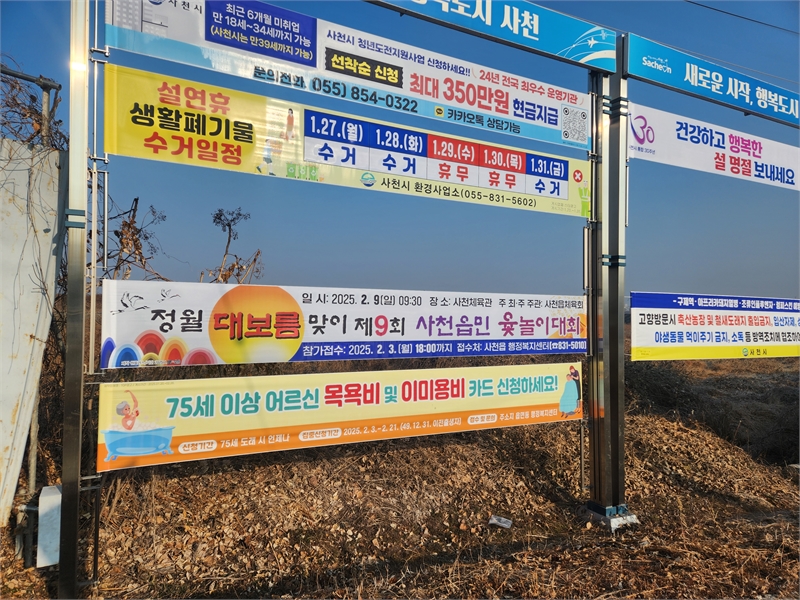 ‘2025년 어르신 목욕비 및 이·미용 지원사업’ 홍보 현수막. 사천시