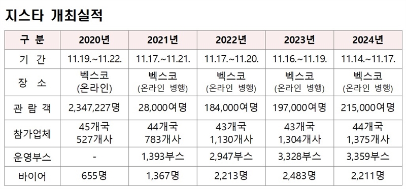 한편 지난해 지스타는 역대 최대 규모인 3359 부스가 설치되고, 21만 5천 명의 관람객이 방문하는 등 코로나19 이후 역대 최다 관람객을 기록하며 성황리에 종료됐다.