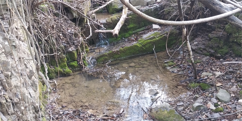 야산에서 내려온 이 물은 도랑보다 조금 더 큰 개울로 흘러간 뒤 강으로 흘러든다.