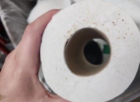 영상에는 휴지에 갈색과 녹색 등 작은 자국이 남아있으며 휴지 곳곳이 움푹 패여 있다.