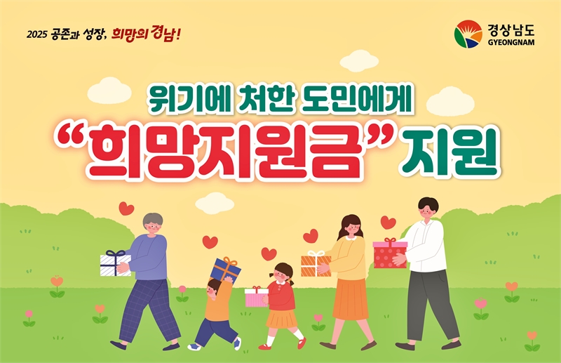 경남도는 19일 올해 처음 도입한 경남형 긴급복지 사업인 '희망지원금'이 도움이 필요한 더 많은 도민에게 돌아갈 수 있도록 사업 모니터링과 홍보를 강화해 나가겠다고 밝혔다.