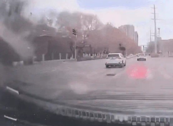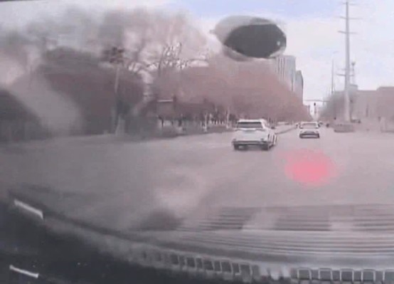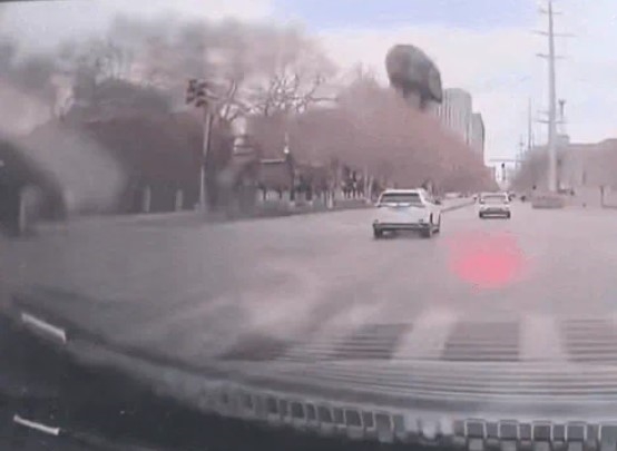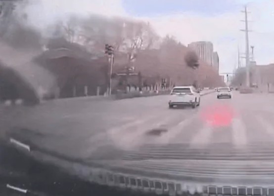 앞 차량이 맨홀 뚜껑을 밟고 지나는 직후 맨홀 두껑이 도로에서 위로 치솟는 모습(앞 차량 위의 검은색). 뒷차량의 블랙박스에서 찍힌 순간이다. 중국 숏폼 동영상 플랫폼 더우인(Douyin, 抖音)