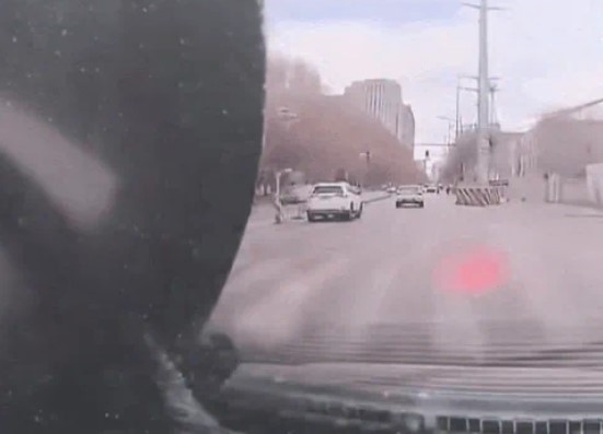 맨홀 뚜껑이 앞유리에 부딪치기 직전 모습. 더우인