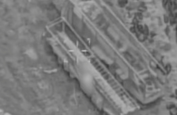 17일 이스라엘 전투기가 포착한 이란의 아메드 이동형 미사일 발사대(TEL). 가운데에 공격할 표적지가 보인다. 이스라엘근군 이란의 TEL 5대를 제거했다고 발표했다. 이스라엘 방위군(IDF) 엑스(X)