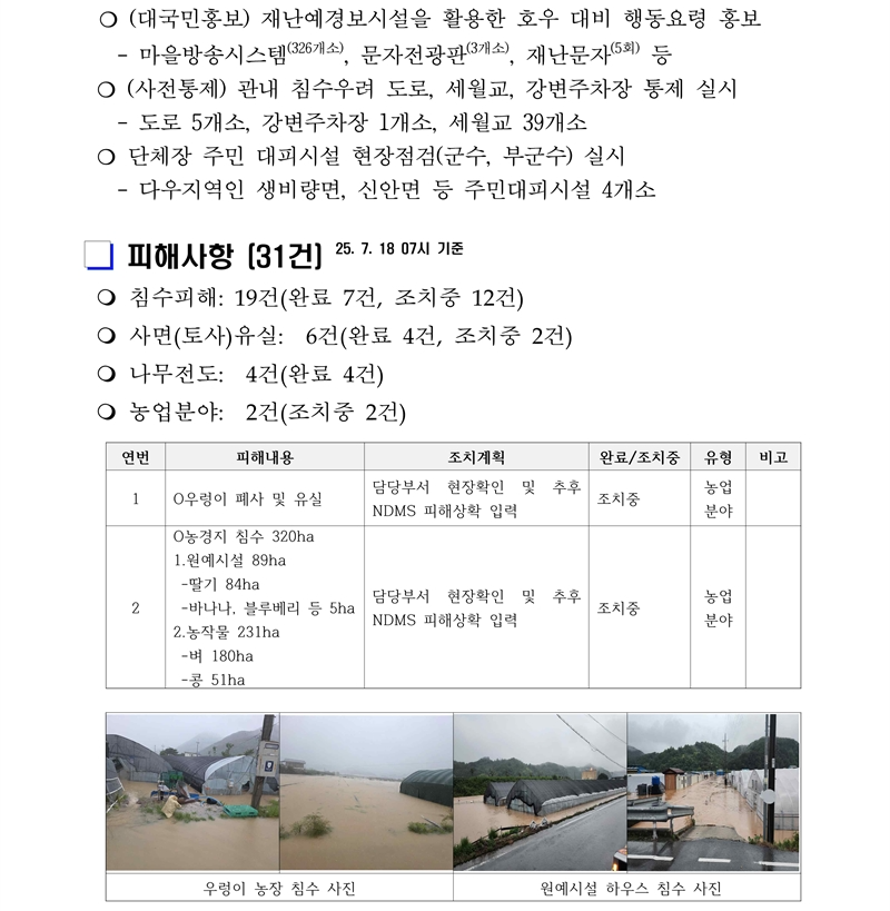 신안면에서는 양지레미콘 앞 지하도가 침수되기도 했다.