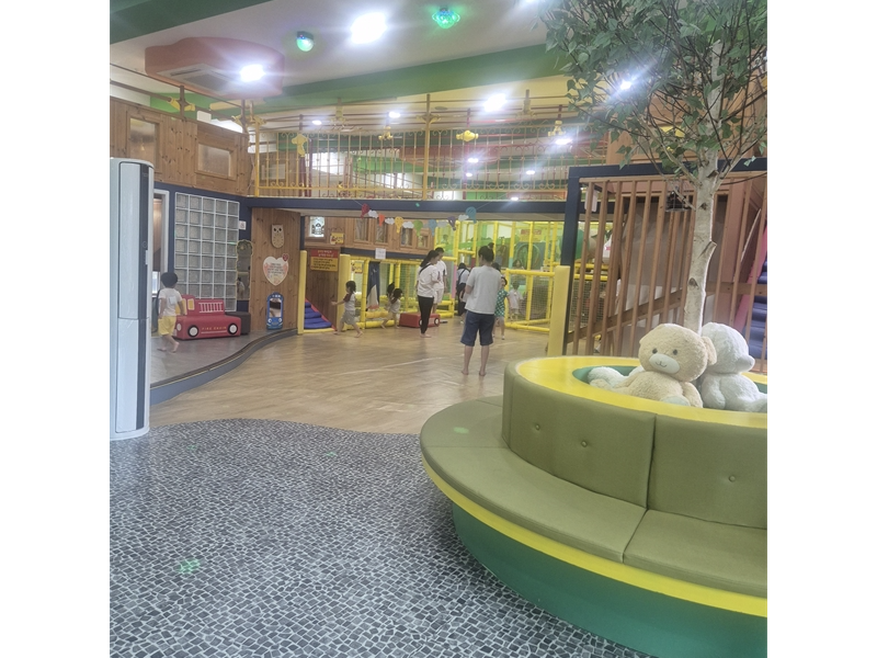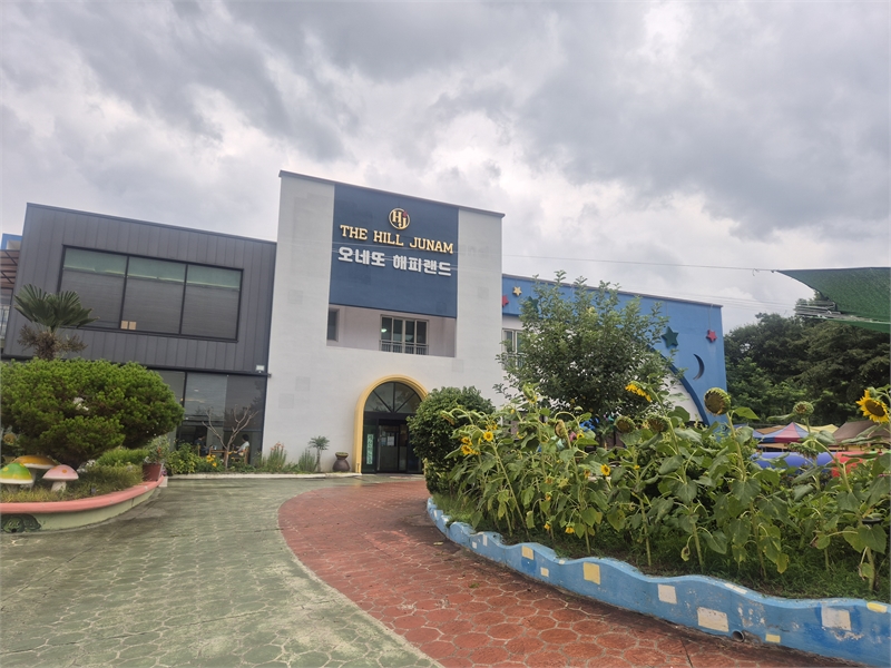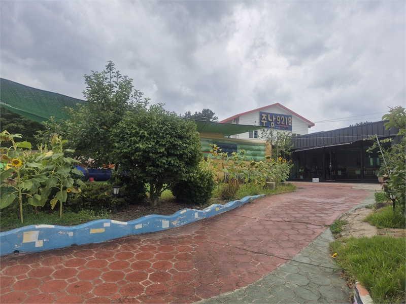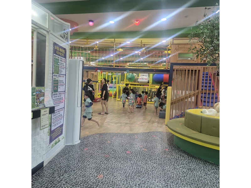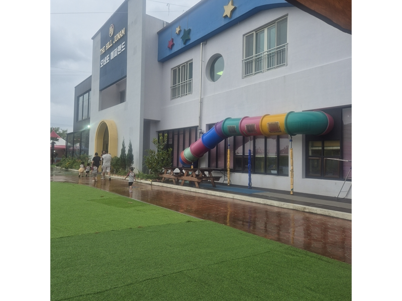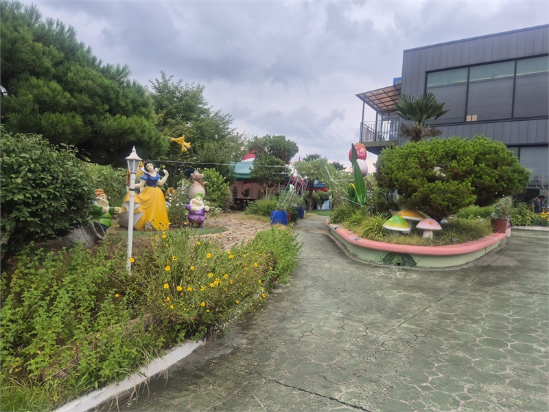 키즈카페 뜰에 아이들이 흥미를 갖거나 호기심을 가질만한 조형물들이 설치돼 있다.