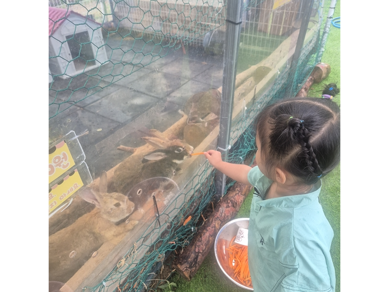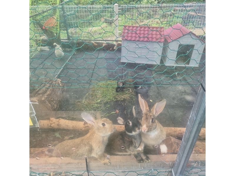 토끼장. 토끼 3마리가 오순도순 함께있는 모습이 아이들처럼 귀엽다.