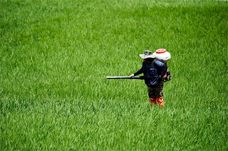 한 농업인이 지난 7월 23일 진주시 진성면 일원 벼 농사 들녘에서 이삭비료를 주고 있다. 이상 정창현 기자