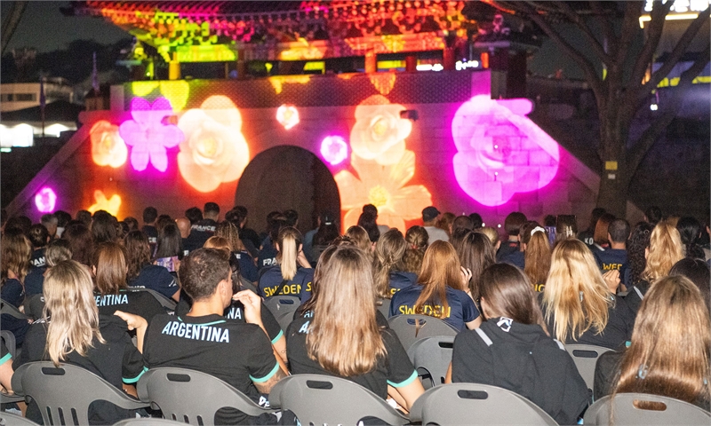 첨단 미디어 기술과 예술적 연출이 어우러진 진주성 성벽의 빛과 영상은 선수단에게 환상적인 여름밤을 선물했다.