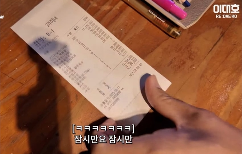 이대호 씨가 대통령배에서 우승한 경남고 야구부 후배들을 격려하기 위해 마련한 회식에서 청구된 1278만 원을 결제하고 있다. 유튜브