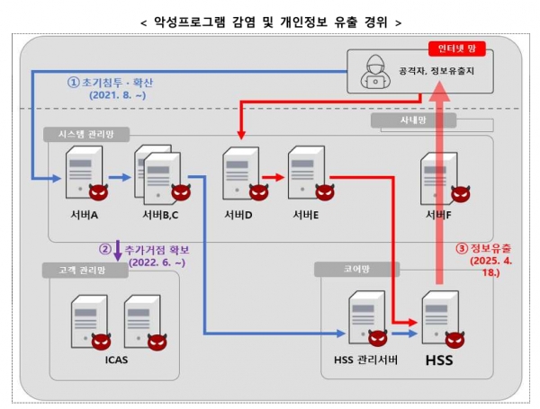 SKT 개인정보 유출 경위 도식 현황. 개인정보보호위원회