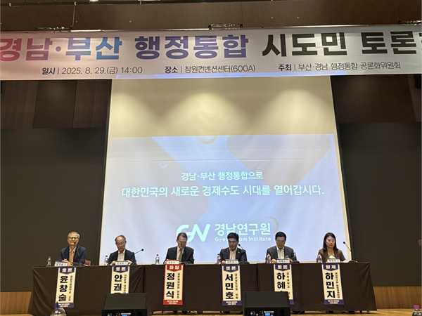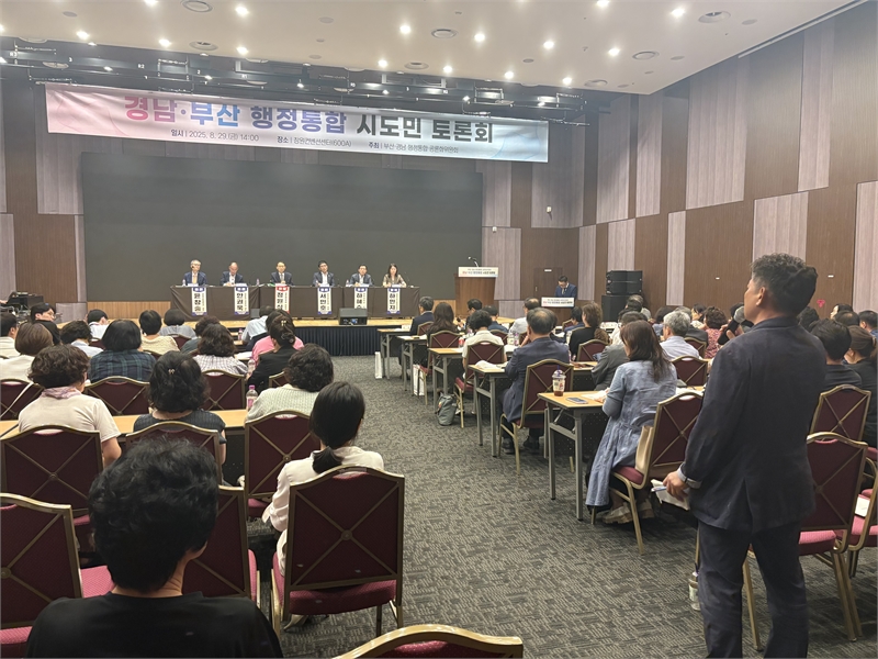 부산·경남 행정통합 공론화위원회는 지난 29일 창원컨벤션센터에서 ‘경남·부산 행정통합 시도민 토론회(중부권)’를 열고 8개 지역 순회를 마무리했다고 밝혔다.