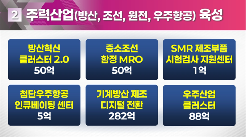 우리나라 수출역군으로서 경남경제를 견인한 방위산업, 조선업, 원전산업과 새로운 경남의 미래 먹거리인 우주항공산업을 육성·지원하는 주요 신규사업 상당수가 정부예산안에 반영됐다.