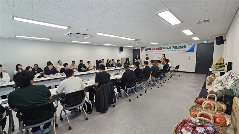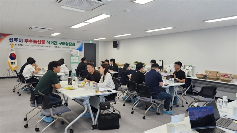 경남 진주시와 한국농수산식품유통공사(aT)는 4일 진주시 먹거리통합지원센터에서 지역 생산자들의 안정적인 판로확대와 소비촉진을 위해 ‘우수 농산물 직거래 구매상담회’를 공동 개최했다.