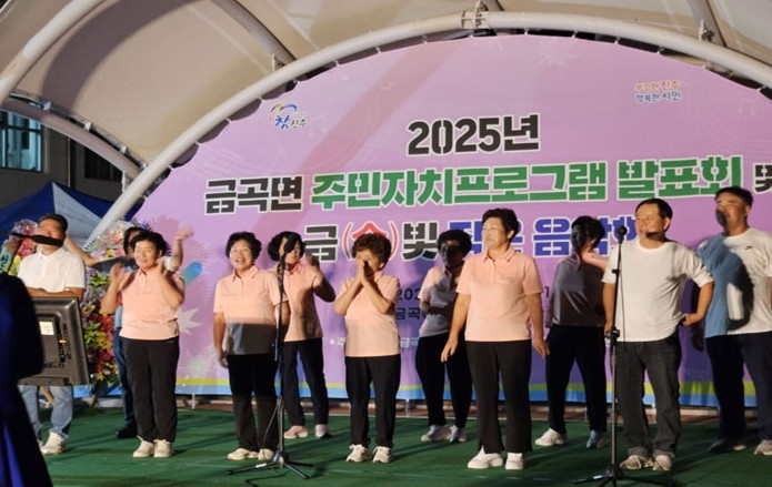 경남 진주시 금곡면 주민자치위원회는 5일 금곡행복나눔센터 주차장에서 주민 100여 명이 참석한 가운데 ‘2025년 금곡면 주민자치 프로그램 발표회 및 금(金)빛 작은 음악회’를 개최했다.