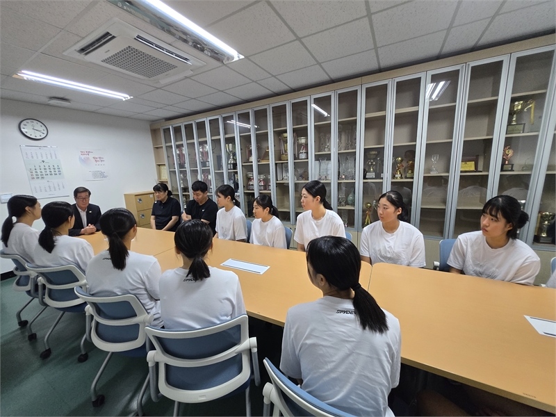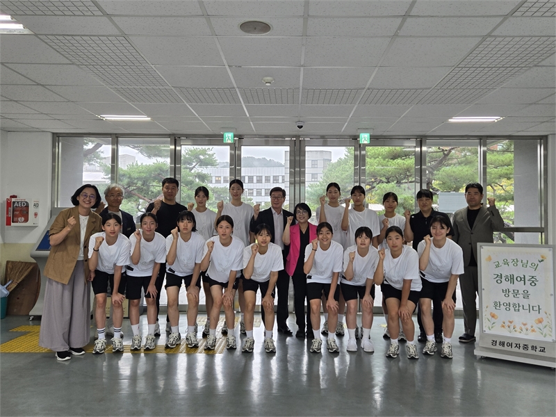 경남 진주교육지원청은 9일 제58회 대통령배 전국 중·고 배구대회에서 여자 중등부 우승을 한 경해여중 배구부를 방문해 축하와 격려를 전하고 '청렴 소통의 시간'을 가졌다.