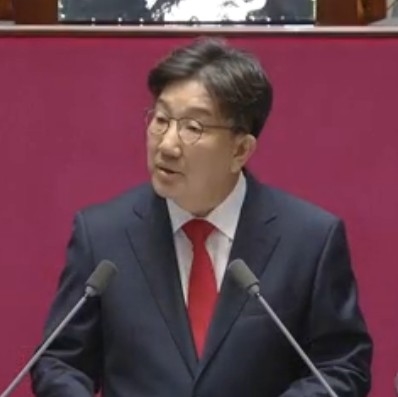 권성동 국민의힘 의원이 11일 국회 본회의에서 신상 발언을 하고 있다. 국회방송