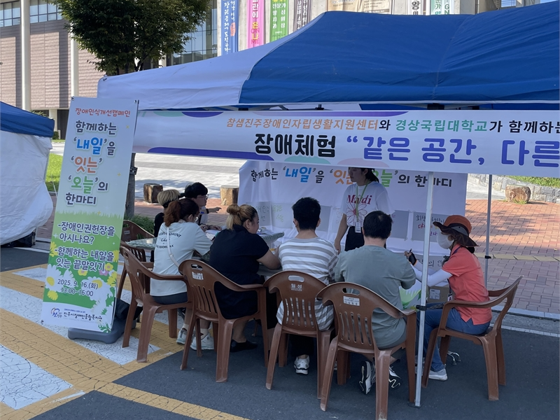 사진·영상존 > 사진 "이 한 장의 사진에 관심 주세요"···경남 진주시장애인종합복지관, 경상국립대 대동제서 장애인식개선 캠페인 정창현 기자 승인 2025.09.17 23:06 | 최종 수정 2025.09.18 03:40 0 "이 한장의 사진에 관심 가져 주세요" 경남 진주시장애인종합복지관은 지난 16일 진주시 경상국립대에서 열리고 있는 대동제에서 장애인식개선캠페인을 벌였다. 이날 행사에는 진주시장애인복지종합관과 참샘진주장애인자립생활지원센터, 경상국립대가 함께했다. 경상국립대 대동제 장애인식개선 캠페인 부스 이상 진주시장애인종합복지관 제공 3 0 더경남뉴스 정창현 기자 gaia008@naver.com 정창현 기자의 기사 더보기 저작권자 ⓒ 더경남뉴스