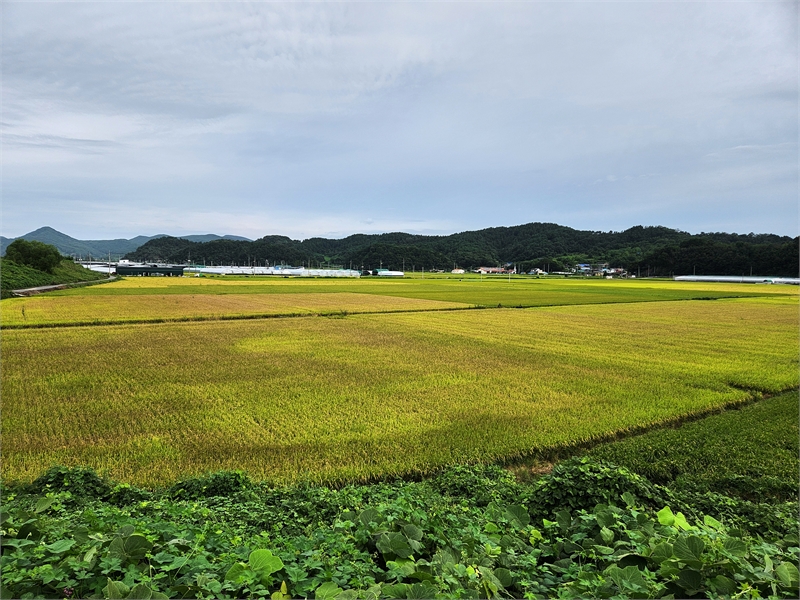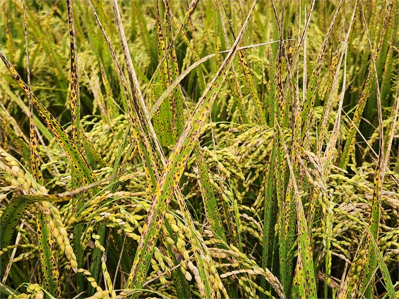 멀리서 보면 누렇게 잘 익은 듯 하지만 가까이에서 보면 깨씨무늬병에 걸려 까만 반점들이 촘촘히 찍혀 있다.