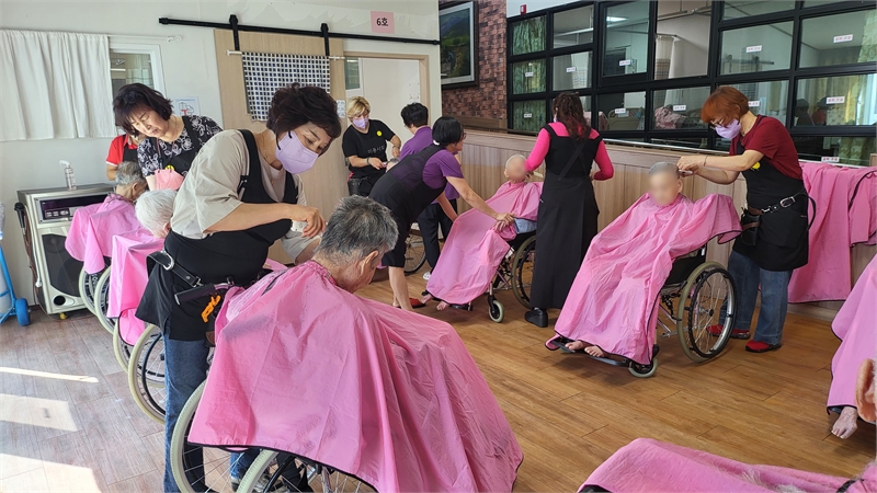 항시 미용협회 회원 10명 정도가 참여해 월 1~2회 시설을 방문해 머리를 다듬고, 어르신들의 말벗이 돼 드리며 심리적 안정감을 갖도록 돕고 있다.