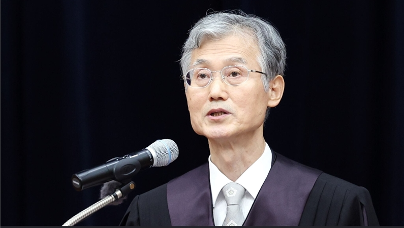 조희대 대법원장이 25일 서울 서초구 대법원에서 열린 신임 법관 임명식에서 축사를 하고 있다. 조 대법원장은 민주당 의원들의 사퇴 압박이 어어지는 가운데 이날 임명식에서 “헌법 정신을 되새겨 의연한 자세로 오직 헌법과 법률, 양심에 따라 재판하라”고 했다. 대법원
