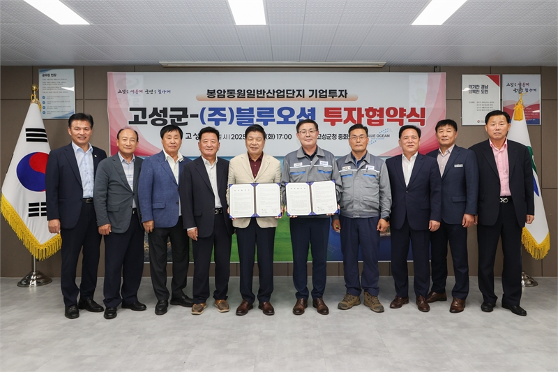 경남 고성군은 9월 30일 ㈜블루오션과 200억 원 규모의 투자 협약식을 갖고, 기업 유치를 통한 지역경제 활성화와 일자리 창출에 나섰다.