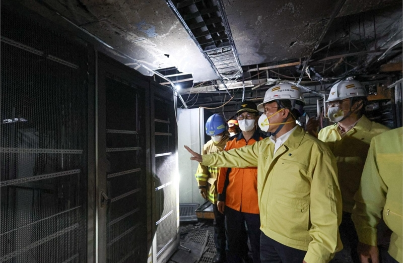 김민석 총리가 대전국가정보자원관리원 화재 현장을 찾아 피해 상황을 살펴보고 있다. 총리실