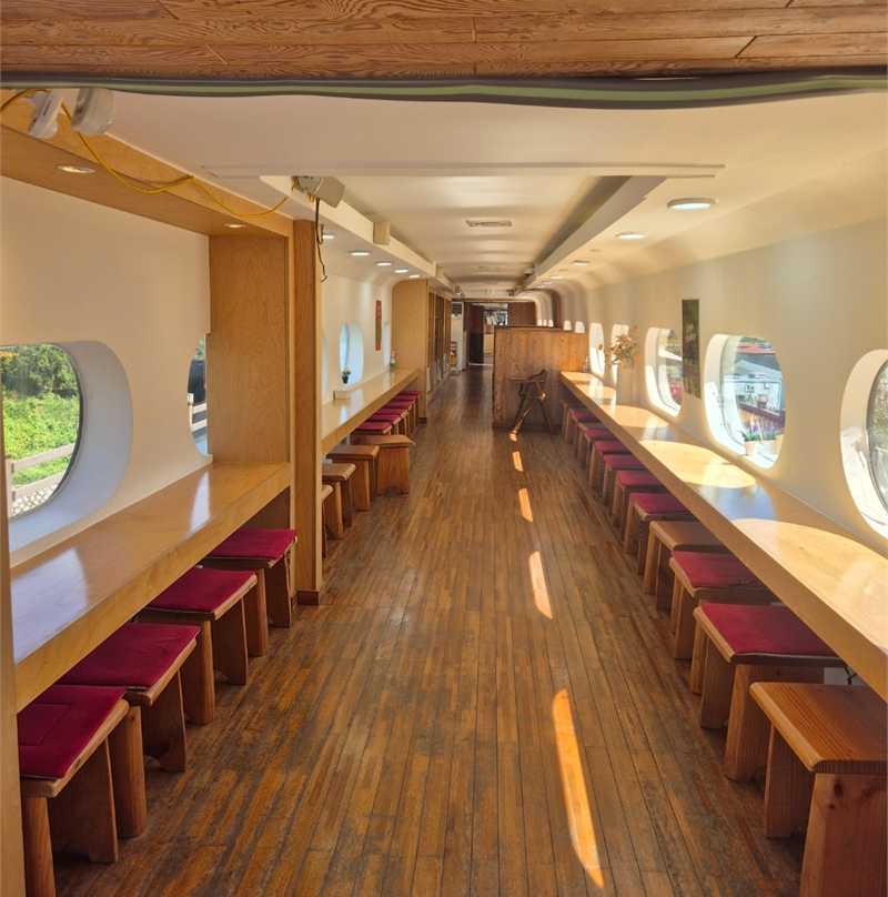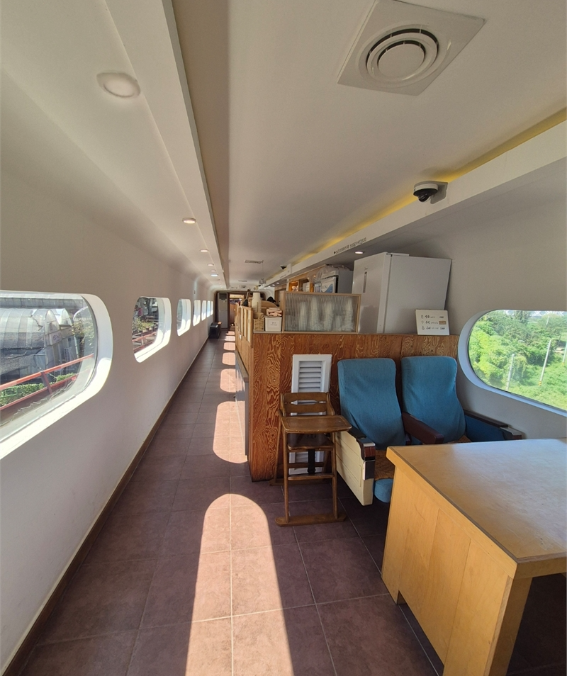 열차카페 창가에 앉아 바깥을 구경하며 휴식을 취할 수 있다.